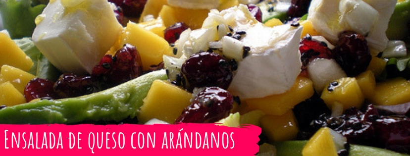 1 mango 1 aguacate 120 gr de arándanos deshidratados Queso de cabra 1 bolsa de brotes tiernos o la lechuga 1 cebolla 1 cucharadita de miel 1 cucharadas de vinagre de vino de Jerez 4 cucharadas de aceite de oliva virgen extra Semillas de amapola o sésamo Sal y pimienta