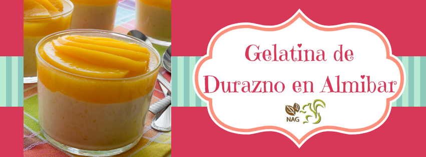 2 Disuelve la gelatina sin sabor en el agua caliente y añádela a la mezcla anterior. En un tazón de vidrio, agrega los duraznos troceados, sobre ellos la mezcla de leches y gelatina y reserva el postre en el frigorífico durante una hora, o hasta que cuaje completamente.